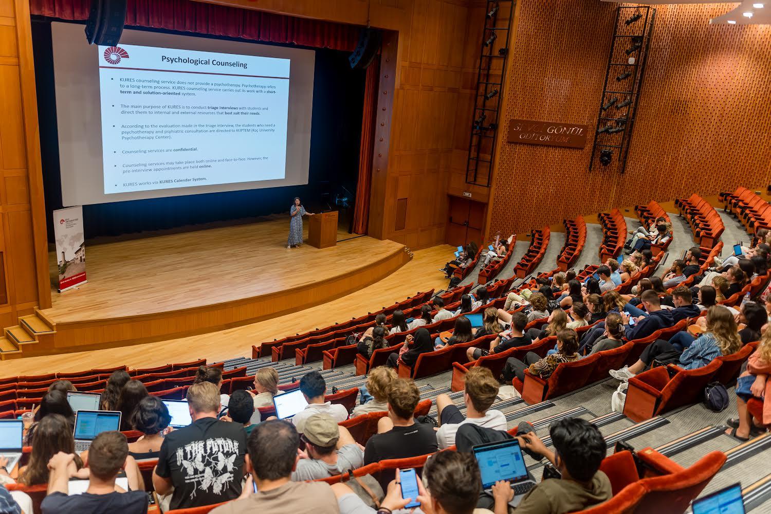 Koç Üniversitesi Oryantasyon Haftası kapsamında, üniversiteye yeni başlayan öğrencilere Psikolojik Danışmanlık Birimi ve psikolojik desteğin önemi hakkında tanıtım sunumu gerçekleştirdim.